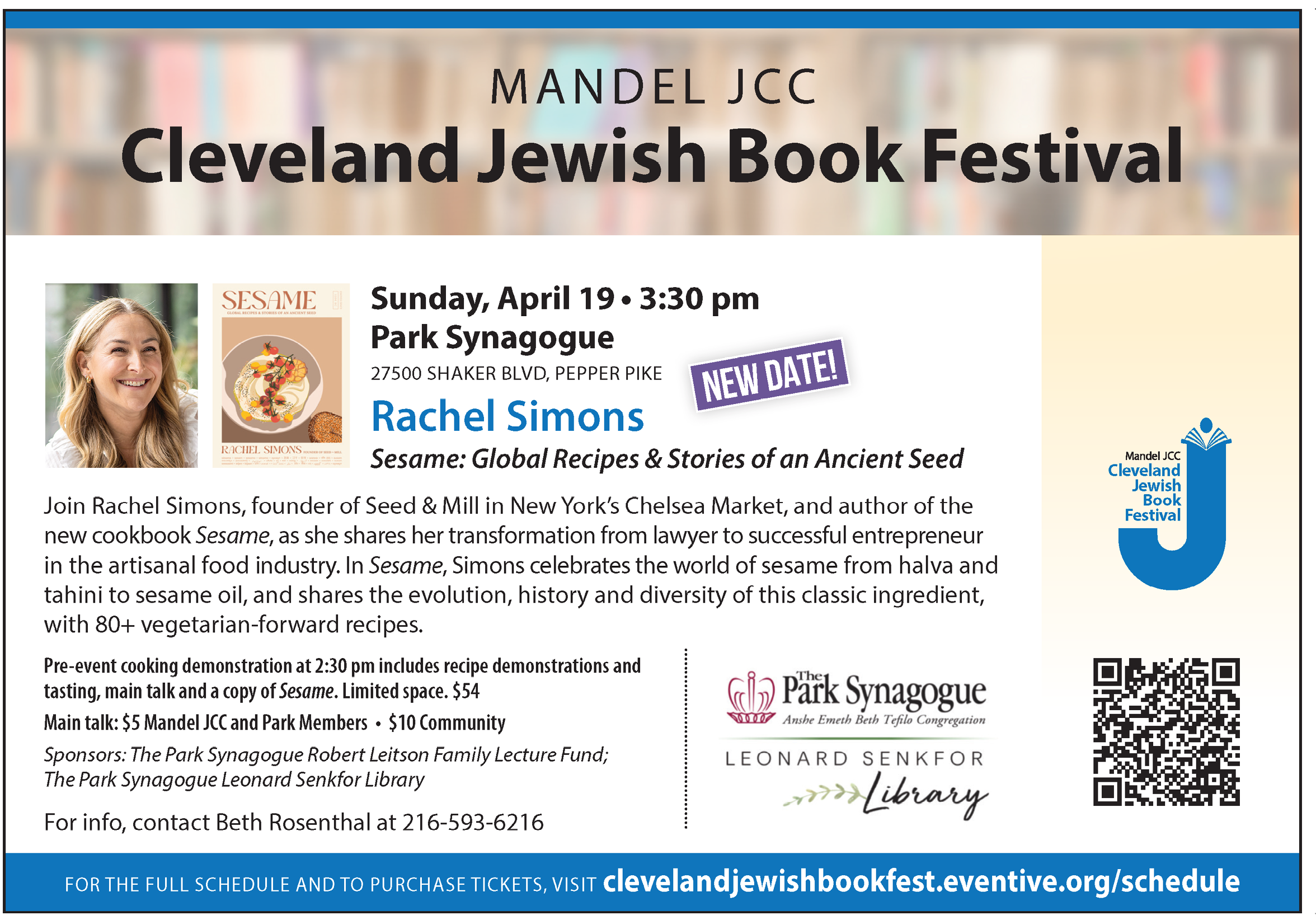 Sesame: Global Recipes & Stories on Ancient Seed Sunday, April 19, 2026 3:30 PM 4:30 PM Park Synagogue 27500 Shaker Blvd Pepper Pike United States (map) Google Calendar ICS